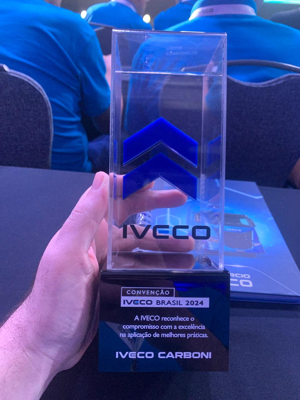A Carboni teve um excelente desempenho nestes prêmios. Recebemos as premiações Ouro e Prata do Dealer Standards, reconhecimento por vendas da Iveco, e também ganhamos prêmios por volume de vendas de consórcio. Um dos números mais interessantes que foram apresentados na convenção é que a cada 4 pesados da Iveco vendidos no Brasil, 1 é vendido pela Carboni. Este resultado é muito importante, e uma motivação extra para todo o esforço e dedicação das equipes de vendas de toda a rede Carboni Iveco.