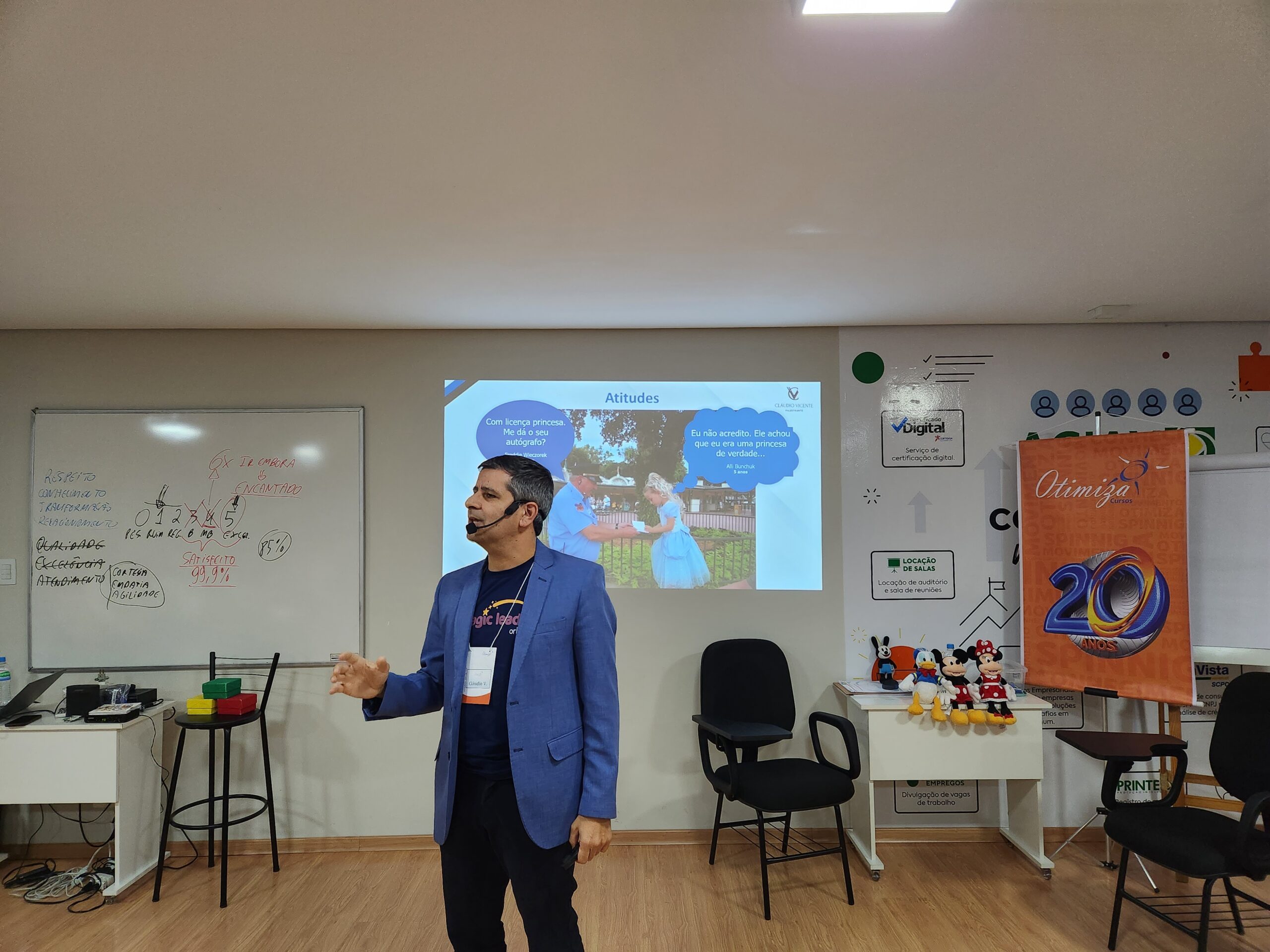 O dia foi cheio de aprendizados, com 6 horas de um treinamento completo feito pelo renomado instrutor Claudio Vicente, palestrante especialista no Método Disney com formação oficial pela Disney Institute. Claudio é administrador com MBA em Marketing pela FGV, e atualmente é professor de diferentes instituições de ensino em disciplinas de Liderança, Gestão de Pessoas e Desenvolvimento de Equipes de Alta Performance. O evento foi organizado em parceria com a Otimiza Cursos e Capacitação.